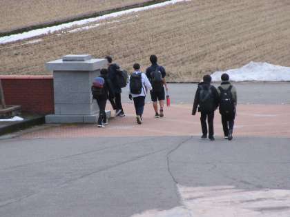 部活動を終えて、みんなで一斉に下校していきました。