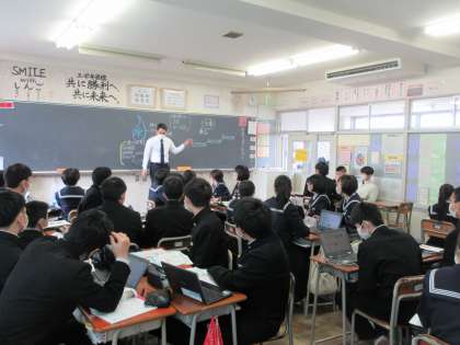 3年生の今日の授業の様子です。 写真上段 3−1 保健体育 写真下段 3−4 英語