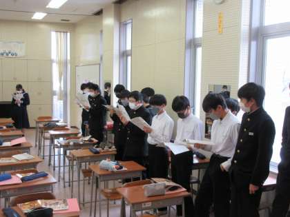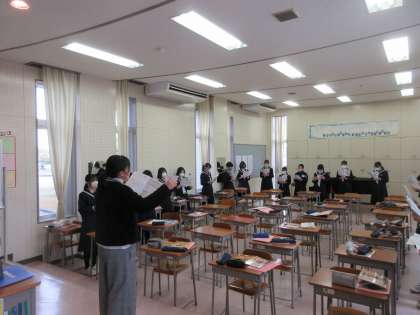 2年3組の音楽の授業の様子です。 パート練習後、全体で合わせて合唱練習を行いました。