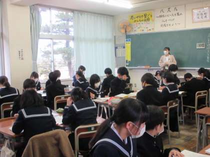 1年生の今日の授業の様子です。 写真上段 1−1 家庭科 写真下段 1−2 国語