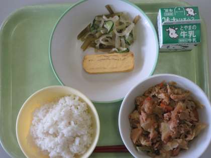 2月21日(火) 今日の給食 公開日 2023/02/21 更新日 2023/02/21 news 今日の給食のメニューは以下のとおりです。 ○ごはん ○牛乳 ○厚焼き卵 ○茎わかめの酢の物 ○回鍋肉 「回鍋肉」は、スタミナ満点でした。