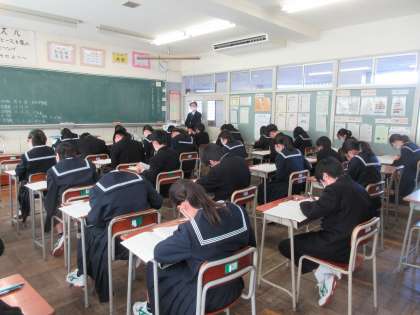 1年生の今日の学年末考査の様子です。