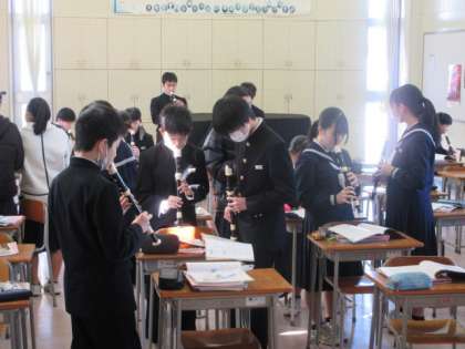 2年生も元気に学習に励んでいます。リコーダーの音色が美しく響き渡り、グループでの合奏を一生懸命行っていました。