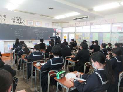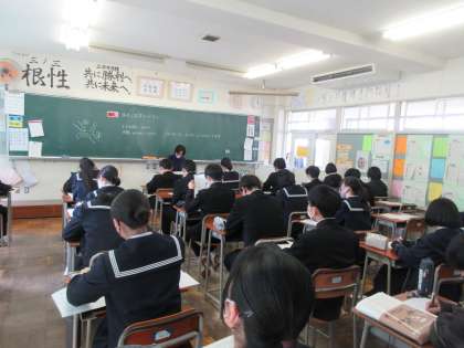 3月1日(水) 3年 授業風景 公開日 2023/03/01 更新日 2023/03/01 3学年 3年生の今日の4限目の授業の様子です。 1〜3限が、「社会」「国語」「理科」の3教科のテストでした。 この順番は、来週の県立高校一般入試と同じ順番で行っています。 4限目は、テストが終わった教科は、さっそく解説をしていました。 写真上段 3−1 数学 写真中段 3−2 英語 写真下段 3−3 社会