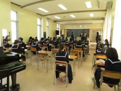 写真は、女子のソプラノの練習風景です。
