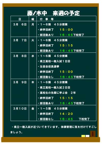 3月6日(月)からの予定