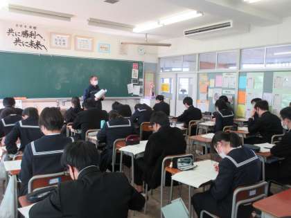 3年生の今日の授業の様子です。 写真上段 3−2 数学 写真下段 3−4 理科