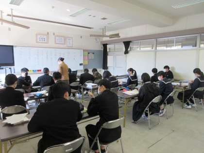 3年3組の国語の少人数指導の様子です。 写真上段 教室グループ 写真下段 視聴覚室グループ