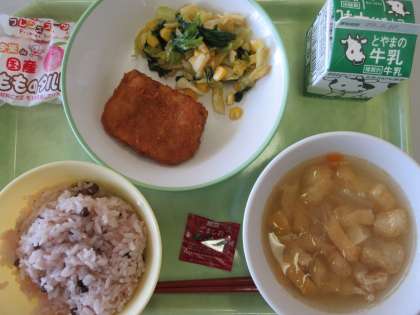 今日の給食のメニューは、以下のように「卒業お祝いメニュー」です。