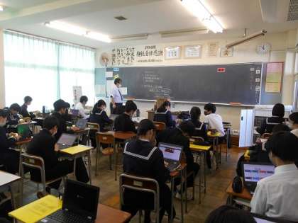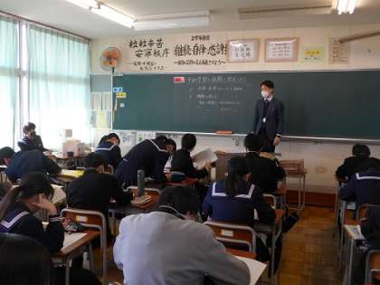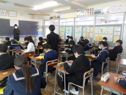 3月3日(金)2年 総合的な学習の時間「平和学習」 公開日 2023/03/03 更新日 2023/03/03 2学年 2学年は本日4限、総合的な学習の時間に「平和学習」を行いました。 生徒一人一人が課題を設定しました。 友達と相談したり、クロームブックを使ったりみんな真剣に取り組んでいました。