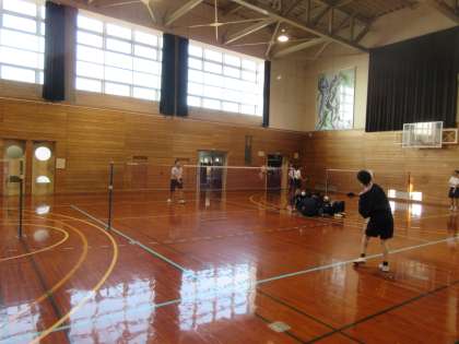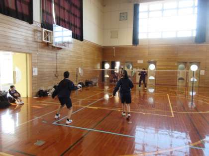 今日の部活動の様子です。 写真は、男女バドミントン部です。