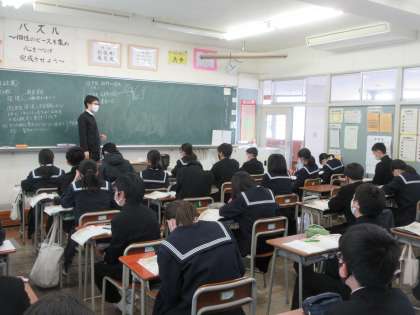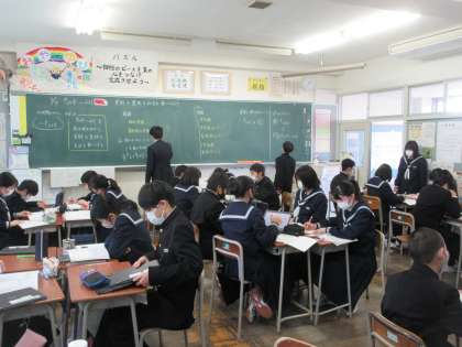 1年生の今日の授業の様子です。 写真上段 1−1 数学 写真下段 1−2 社会