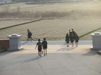 今日の下校風景です。 眩しい西日を受けながら下校しました。