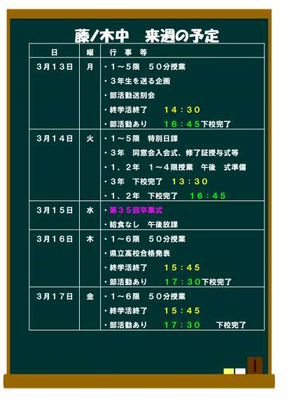 《週末掲載》3月13日(月)からの予定