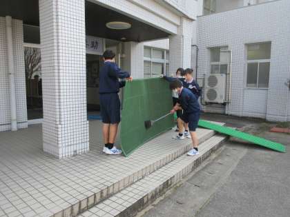 生徒玄関は、下足ロッカーの中や泥よけマット、下足ロッカーの上など、隅々までキレイにしました。