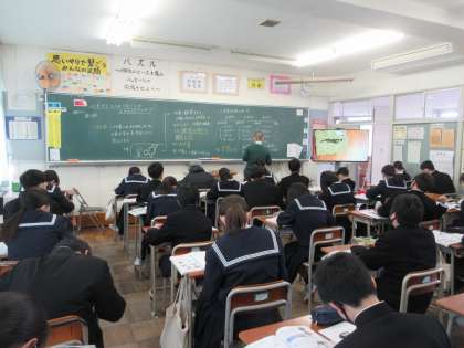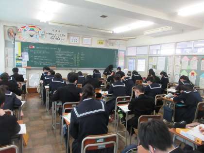 1年生の今日の授業の様子です。 写真上段 1−1 英語 写真下段 1−2 理科
