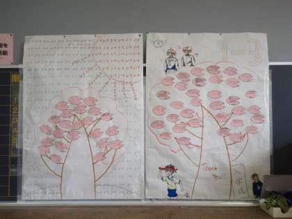 写真下段:3−4教室には、1年4組、2年4組のメッセージです。