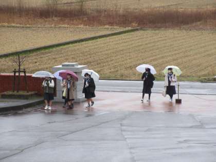 今朝は久しぶりの雨の中、傘をさしながらの登校となりました。
