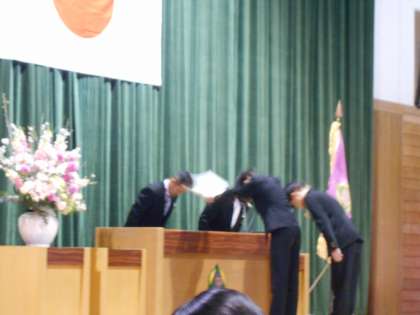鍋田校長が、一人一人に卒業証書を手渡しました。