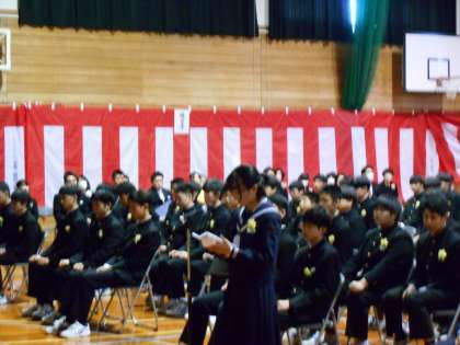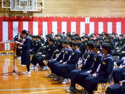 前期生徒会長が、中学校生活3年間を振り返って「門出のことば」を残しました。