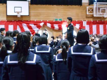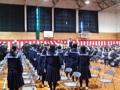 3月15日(水) 第35回卒業式 門出の歌 公開日 2023/03/15 更新日 2023/03/15 news 「門出のことば」の後、「門出の歌」をマスクを付けて歌いました。 卒業生は、3年間素晴らし合唱を披露してきてくれた学年で、卒業式の「門出の歌」でも素晴らしい歌声を聞かせてくれました。