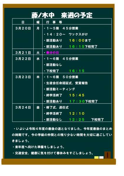 3月20日(月)からの予定