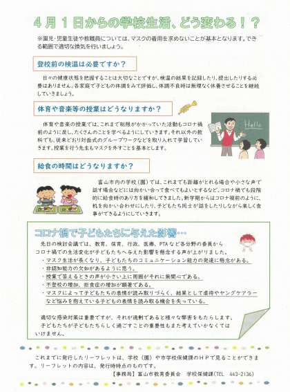 4月1日からの学校生活の変化についての説明が掲載されています。