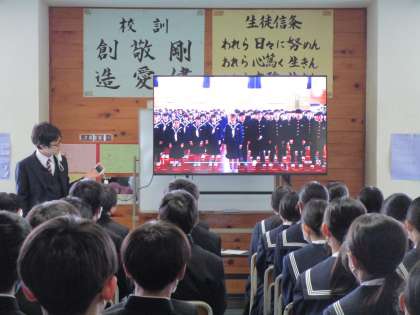 先日の「3年生を送る会」で使用したスライドを初めて1年生全員で見ました。