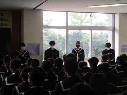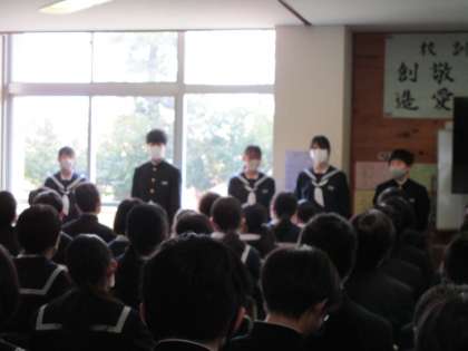 スライドの後は、学年生徒会の生徒たちから各学級と学年の振り返りがありました。
