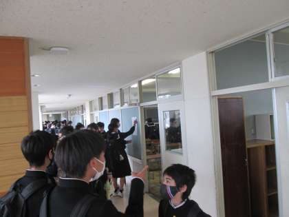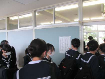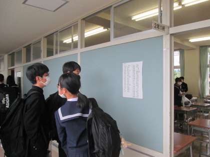 離任式終了後教室に戻り、新学年の新たなクラスが発表されました。
