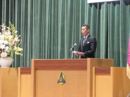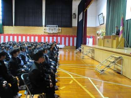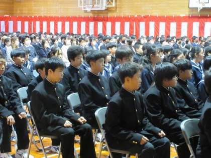 新入生は、校長式辞を熱い眼差しで聞いていました。