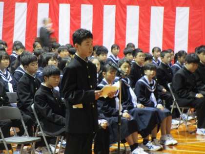 新入生の代表生徒が、「誓いの言葉」を鍋田校長に宣言しました。