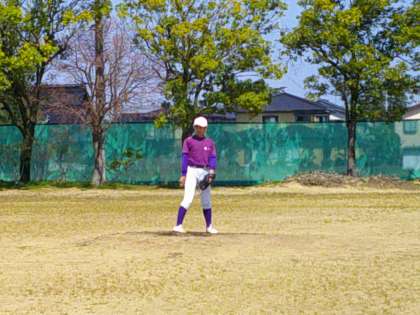 グラウンドでは、野球部が牽制の練習をしています。コーチのアドバイスを熱心に聞いています。