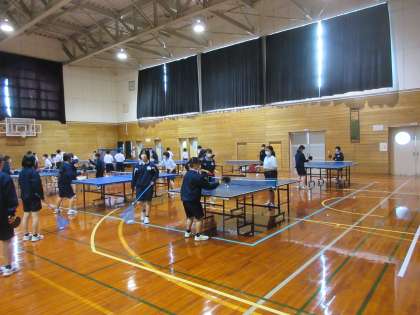 4月14日(金) 今日の部活動 卓球部 公開日 2023/04/14 更新日 2023/04/14 news 1年生の体験入部も3日目になります。 そろそろ意中の部活動が決まってきたでしょうか? 来週には入部届を提出してもらうので、週末には家族とじっくり話をしてください。 写真は、卓球部の活動の様子です。
