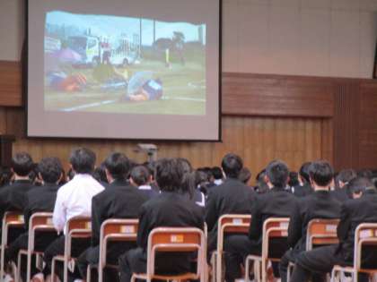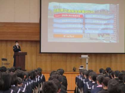 4月18日(火) 交通安全教室 公開日 2023/04/18 更新日 2023/04/18 news 本日6限、富山中央警察署交通課 守谷企画係長、交通安全協会 岡田事務局次長をお招きして「交通安全教室」を実施しました。 前半はDVD視聴し、後半に講話をいただきました。 自転車の乗車中の被害者となる事故と加害者になる事故についての話がありました。 4月からヘルメット着用努力義務となりましたが、より一層交通安全に注意するよう話がありました。