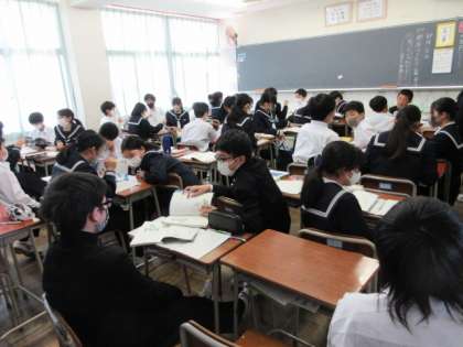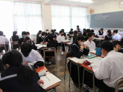 4月20日(木) 1年 授業風景 公開日 2023/04/20 更新日 2023/04/20 1学年 写真上段 1−3 数学 正負の数について班ごとで話し合っていました。 写真下段 1−4 国語 ペアになって詩の朗読をしていました。