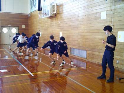 写真上段 3ー4 保健体育「体つくり運動・新体力テスト」