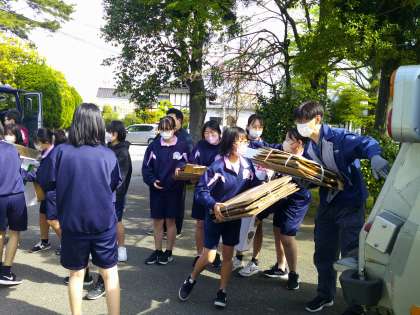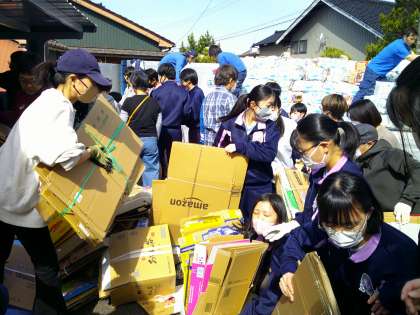 各回収場所では、生徒も荷物を運んだり、声を掛け合ったりと積極的に参加しています。