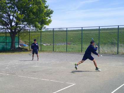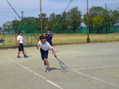 4月29日(土・祝) 休日の部活動 男子ソフトテニス部 公開日 2023/04/29 更新日 2023/04/30 news 今日は暖かいですが、少々風が強い日になりました。 風にもめげず、男子ソフトテニス部が元気に活動しています。 2、3年生は来週の試合に向けて試合形式の練習を、1年生は先輩に球出しをしてもらいながらフォアの練習をしています。