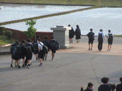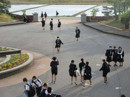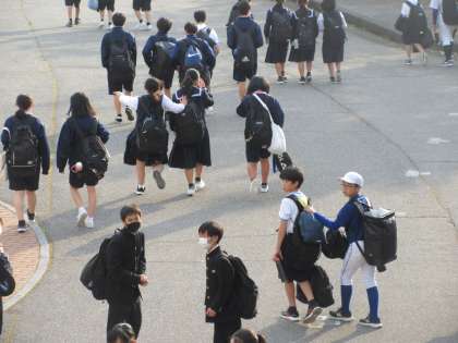 終学活終了後に下校する際には、雨がぱらついていたのですが、部活動終了後に下校する際には、とてもよい天気で、風も収まり穏やかな天候の中下校していきました。