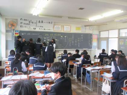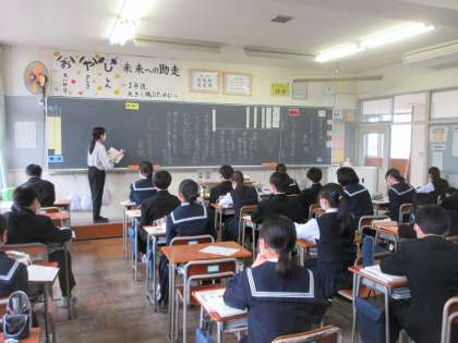 2年生の今日の授業の様子です。 写真上段 2−1 保健体育 写真下段 2−2 国語