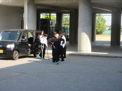 現在、脚をケガしていて松葉杖をついて学校生活を送っている生徒が、保護者の送迎で前庭に到着すると、すぐに駆け寄り荷物を持ってあげる心優しい生徒たちがいます。