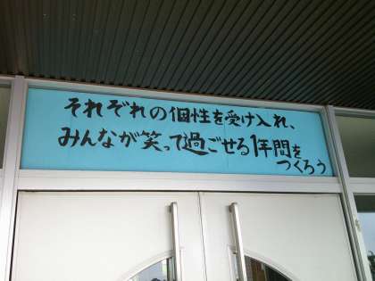 各学年の生徒が揃う入り口の上に貼ってあるので、毎朝登校時目に入ります。