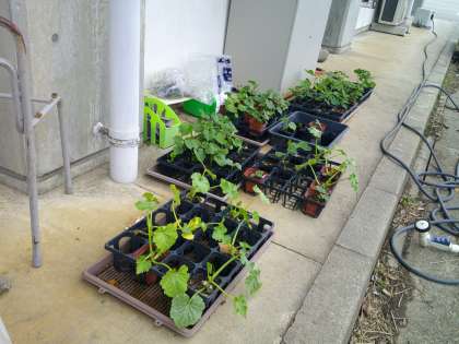 畑の横には、今か今かと畑に植えられる苗たちがスタンバイしています。色々な野菜の芽が大きくなってきました。