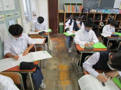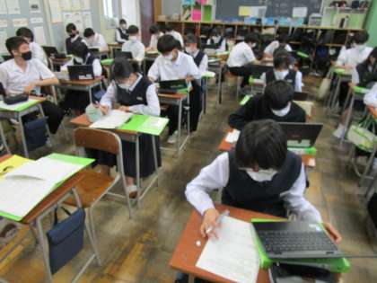 本日5・6限目の総合的な学習の時間では、「14歳の挑戦」の個人の課題(テーマ)を考えました。