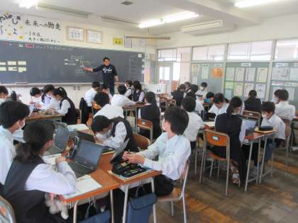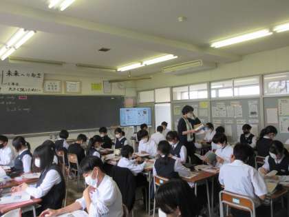 2年生の今日の2限目の授業の様子です。 写真上段 2−1 英語 写真下段 2−2 保健体育