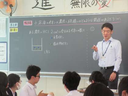 写真は、3年2組の理科の授業の様子です。