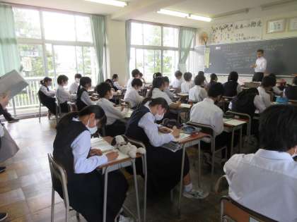 写真は、2年2組の社会の授業の様子です。