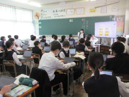 写真は、2年3組の国語の授業の様子です。