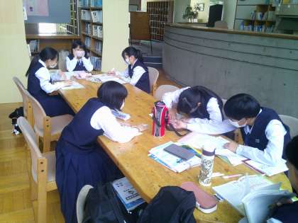 1年生は教室や図書室のスペースを使って、思い思いのスタイルで勉強しています。